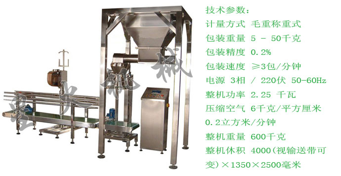 張家界粉劑包裝機(jī)|毛重法粉劑自動(dòng)稱量包裝機(jī)產(chǎn)品展示:![]() 產(chǎn)品介紹: 該機(jī)是人工協(xié)助上袋,自動(dòng)稱量、夾袋、充填、振動(dòng)、推袋、經(jīng)傳送帶傳遞進(jìn)行自動(dòng)縫包或封口。通過改變給料方式,適應(yīng)于包裝超細(xì)粉到大顆粒物料,如大米、豆類、奶粉、飼料、金屬粉末、塑料顆粒及各種化工原料的敞口袋定量包裝。 性能及特點(diǎn): 1、該機(jī)由三菱PLC、美國托利多稱重傳感器和稱重儀表構(gòu)成稱重控制核心,最大限度地提高了機(jī)器的稱重控制精度和穩(wěn)定性。 2、整機(jī)均為304不銹鋼制成,能夠適用于腐蝕性化工原料。 3、氣動(dòng)夾袋器,密封性好,大小可更換,能夠適應(yīng)多種尺寸包裝袋。 4、可選給料方式:雙螺旋、雙振動(dòng)、雙閥門。 5、另有多種附件可供選擇:不同規(guī)格和材料的輸送帶、縫包機(jī)、封口機(jī)、夾袋器等。 ![]() 山中寶特產(chǎn)有限公司堅(jiān)持“以質(zhì)量求生存.以市場求發(fā)展,全力打造張家界土特產(chǎn)知名品牌”的經(jīng)營理念。誠實(shí)經(jīng)營,誠實(shí)服務(wù)。公司自成立以來,先后獲得過省市縣三級的多項(xiàng)表彰。榮獲“旅游商品開發(fā)突出貢獻(xiàn)先進(jìn)單位”獎(jiǎng)。被市人民政府確定為“A級企業(yè)”和“食品質(zhì)量安全穩(wěn)定企業(yè)”。山中寶特產(chǎn)有限公司經(jīng)營模式采取基地加農(nóng)戶加網(wǎng)上實(shí)體銷售一體,是張家界地區(qū)為數(shù)不多的大型開發(fā)銷售公司和直銷網(wǎng)點(diǎn)。山中寶特產(chǎn)有限公司用自己的服務(wù)和質(zhì)量打動(dòng)客戶,用自己的實(shí)力來為其發(fā)展打開一個(gè)全新的發(fā)展界面。 張家界粉劑包裝機(jī)|毛重法粉劑自動(dòng)稱量包裝機(jī)車間圖: ![]() 張家界粉劑包裝機(jī)客戶案例: 張家界茅巖河綠色食品有限公司 張家界山中寶特產(chǎn)有限公司 張家界永定食品廠 張家界特發(fā)農(nóng)業(yè)有限公司 張家界望城坡水果場 張家界億家貿(mào)易有限公司 張家界桑植螢石有限公司 張家界盛民大藥房有限公司 張家界海八哥商貿(mào)有限公司 張家界香絲樂食品加工廠 張家界久瑞生物科技有限公司 張家界靈潔綠色食品有限公司 |